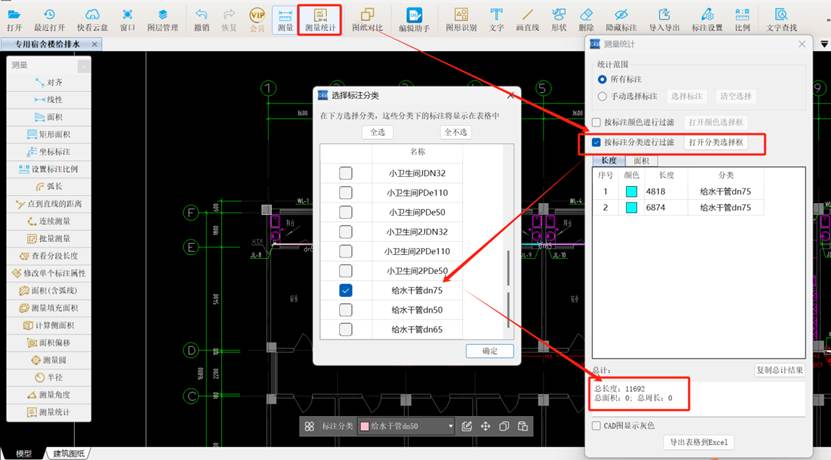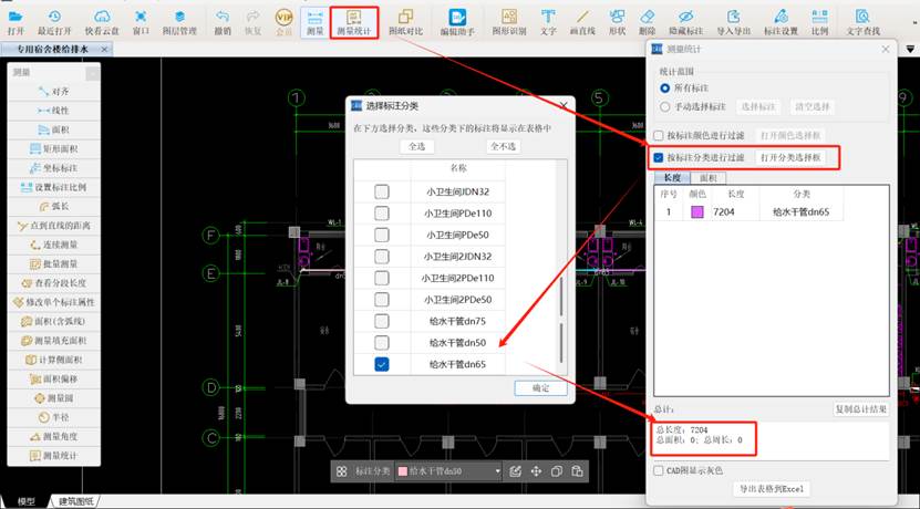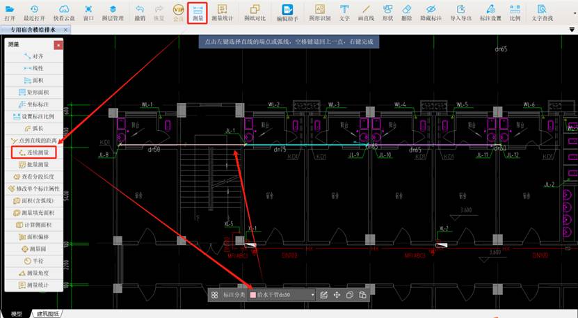 #给水干管#文字查找#连续测量#标注管理#CAD快速看图#测量统计#工程量