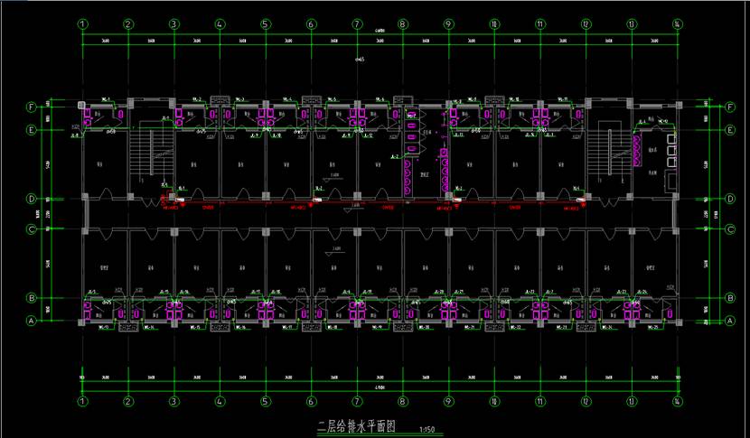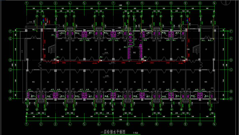 给水干管作为室内给水系统的主干线,其工程量计算需综合系统图与平 面图,明确管径变化与走向。本文将通过CAD 快速看图的【连续测量】与【文字查找】,高效追踪管道路径,快速完成不同管径干管的分类统计,显著提升工程量计算效率。