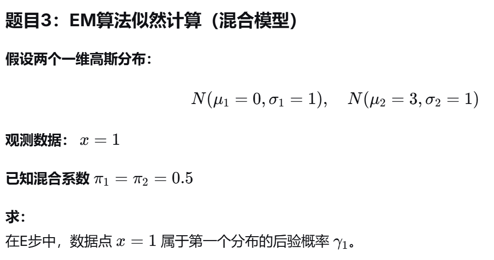 | EM算法思想 | 填空、简答 | E步、M步、隐变量 |