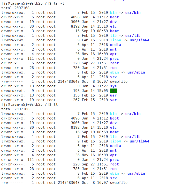 ls 表示当前目录下所对应的文件列表(包括目录,普通文本文件...)