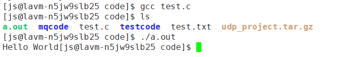 回到命令行后输入gcc 文件名就可以对代码进行编译,然后就会生成a.out,最后输入./a.out就可以直接运行了