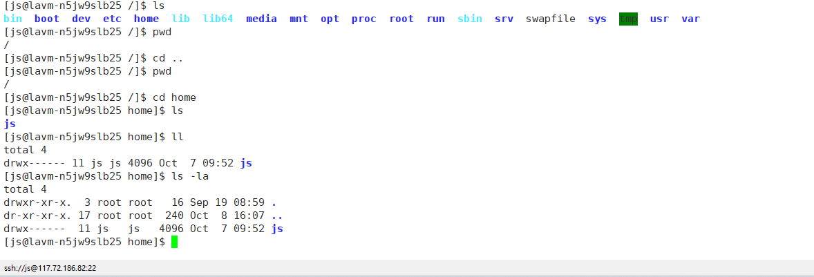 进入指定目录,可以配合.和..往返目录,cd ..就等价于window中的回退