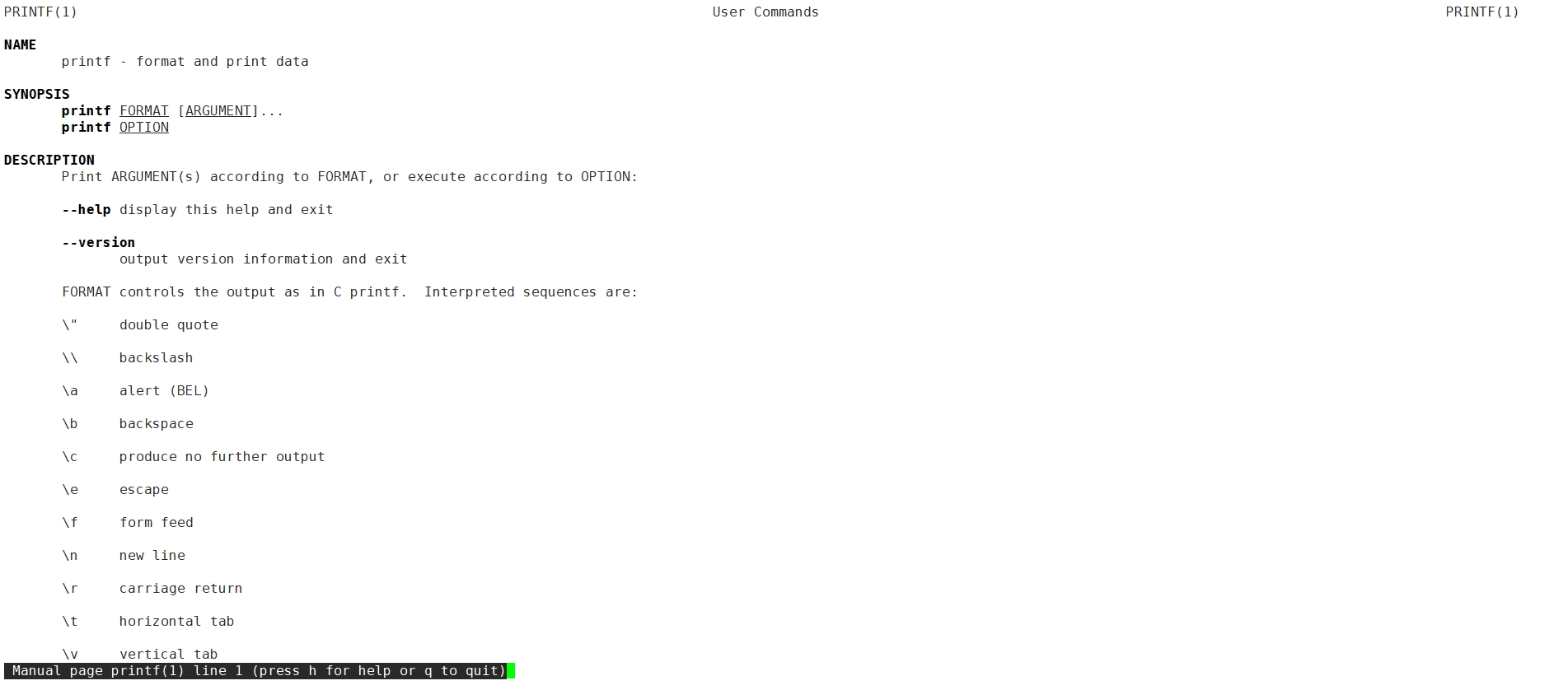 而且man不止一个,例如输入man 1 printf就可以查看1号手册里的printf