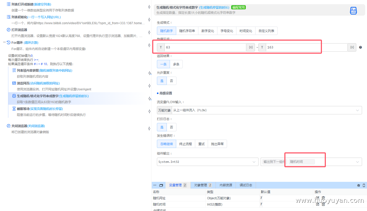 7、生成随机/格式化字符串或数字, 设置数值范围,导出到变量随机时间,用于后续页面停留时长