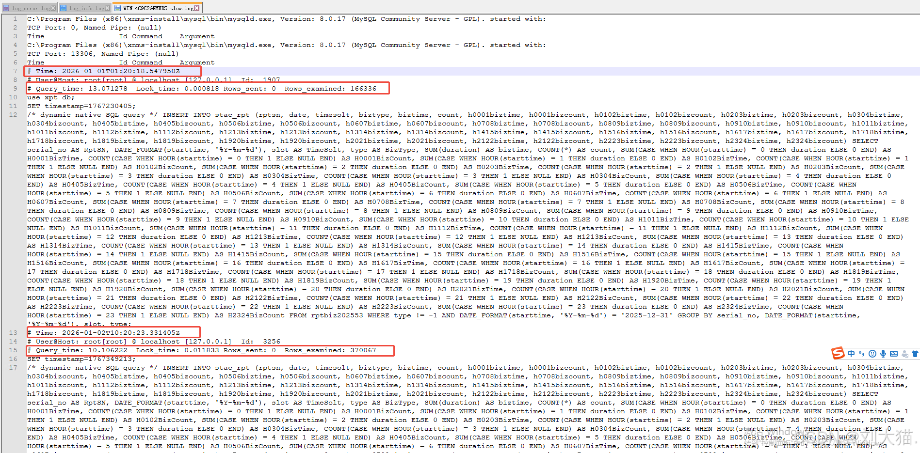 # User@Host: root[root] @ localhost [127.0.0.1] Id: 3256