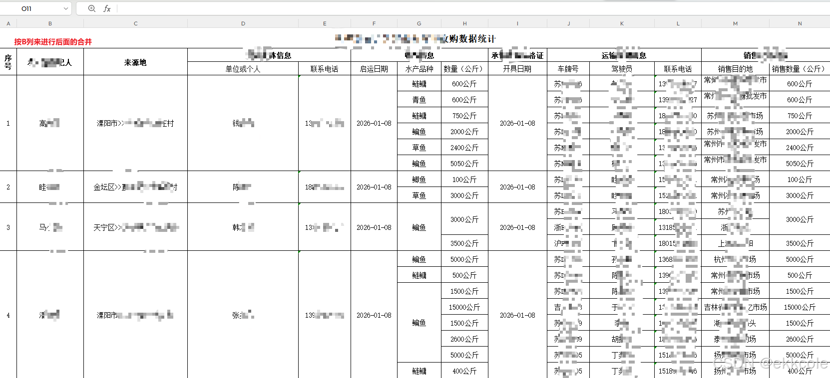 * 根据水产品经纪人列进行合并