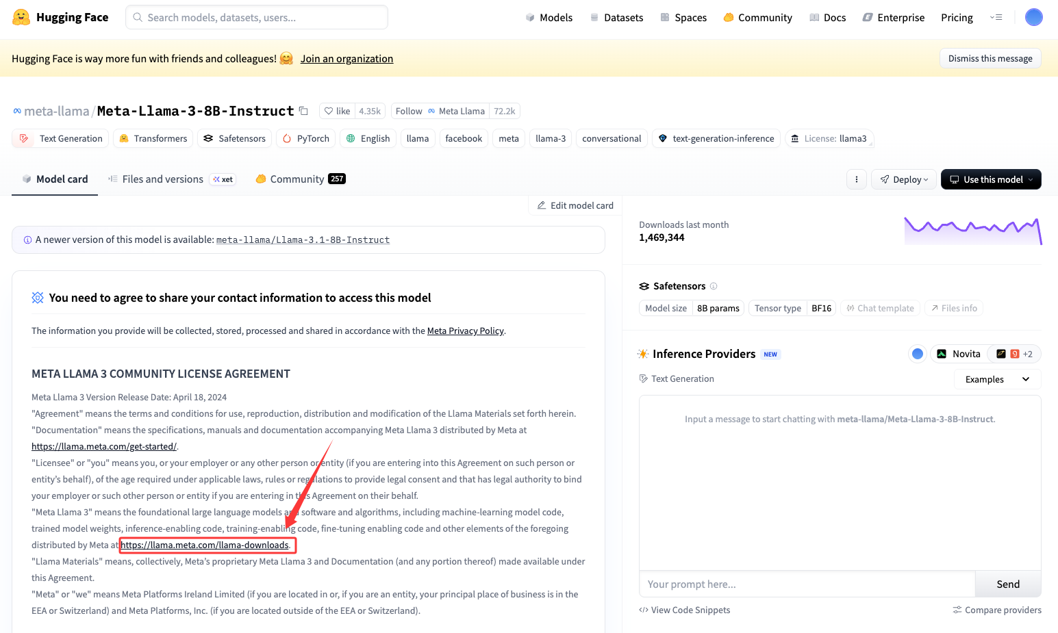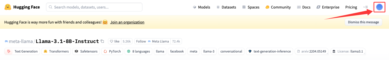 访问Meta-Llama-3.1-8B-Instruct模型在Hugging Face上的官方仓库。