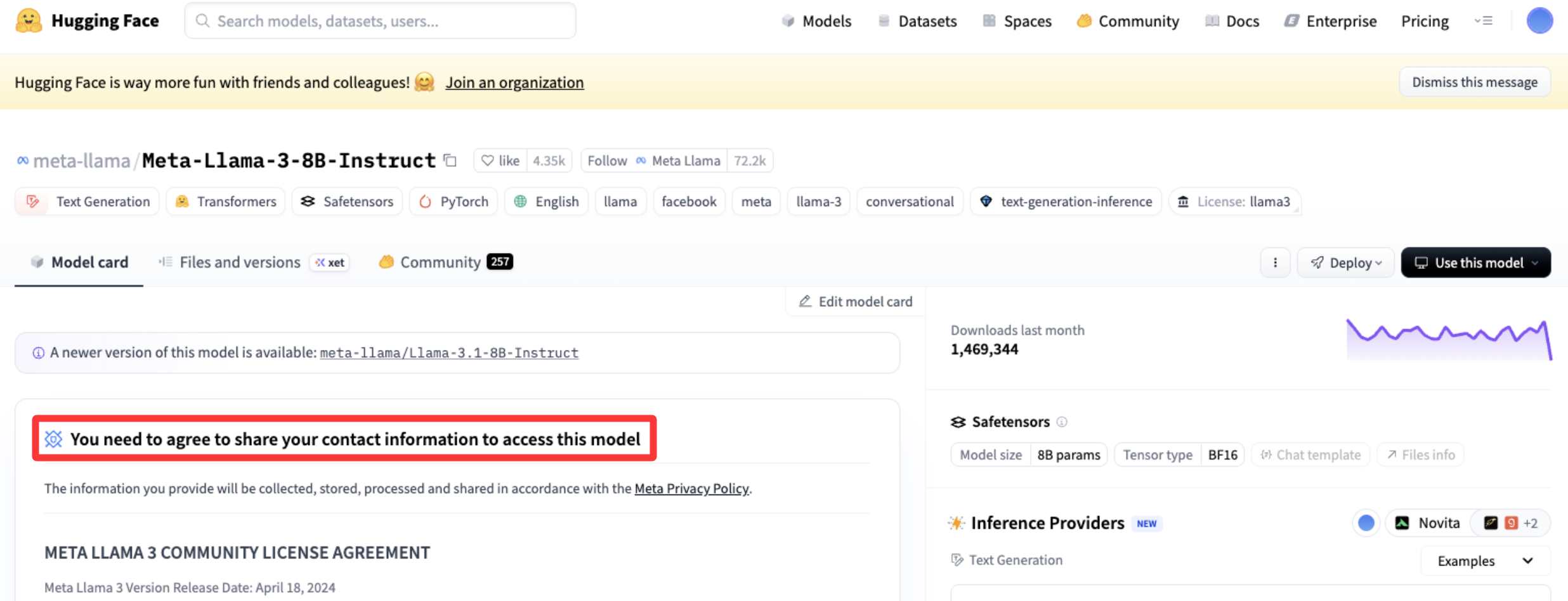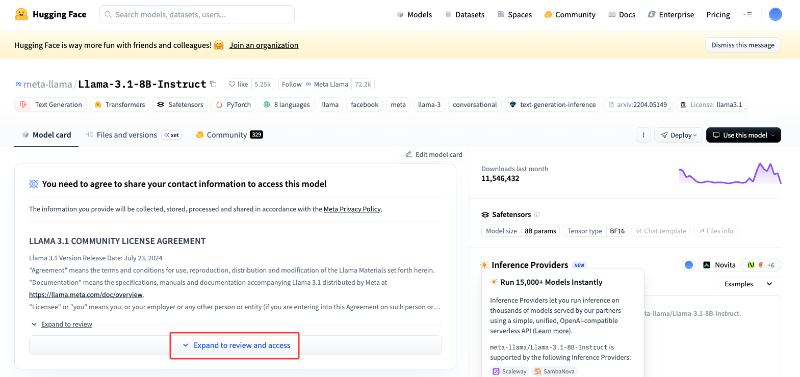 假若你看见"You need to agree to share your contact information to access this model"字样,说明需要申请授权。