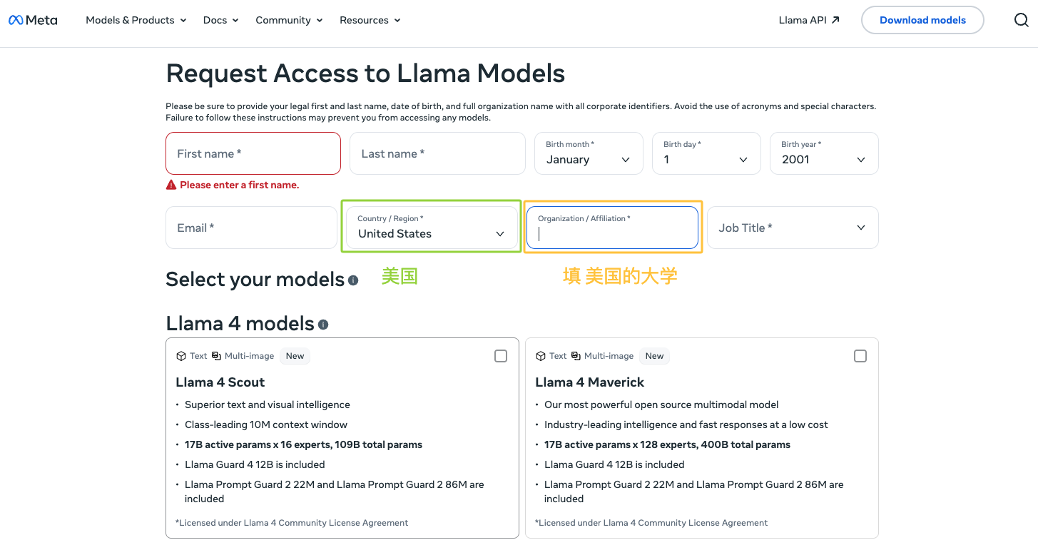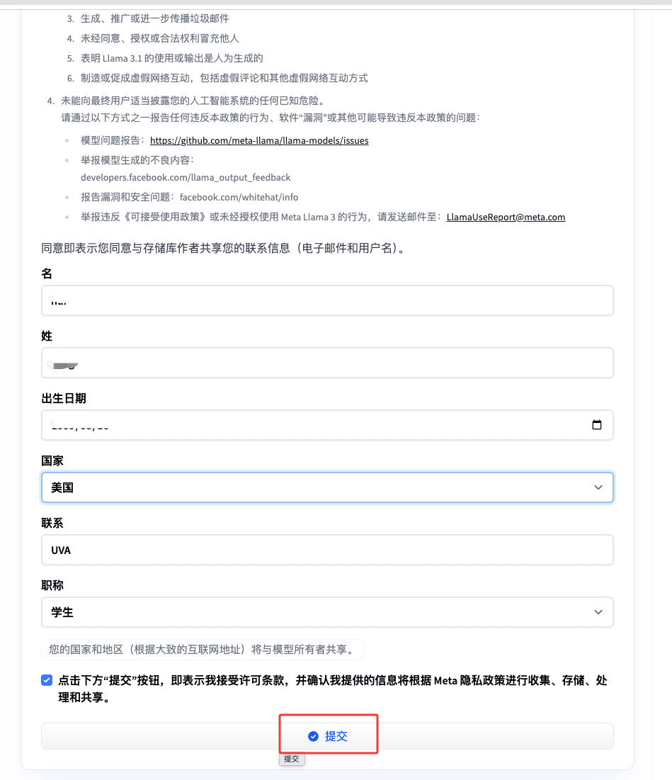 1、 点击链接,申请访问Llama模型