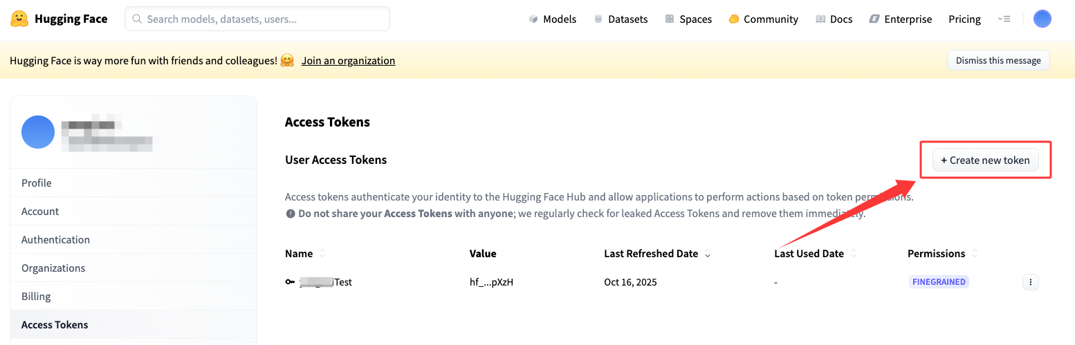 Hugging Face访问令牌: