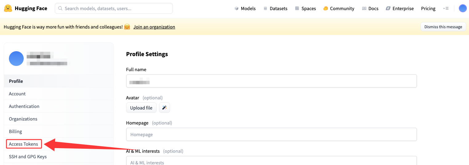2、申请Hugging Face 访问令牌的方法