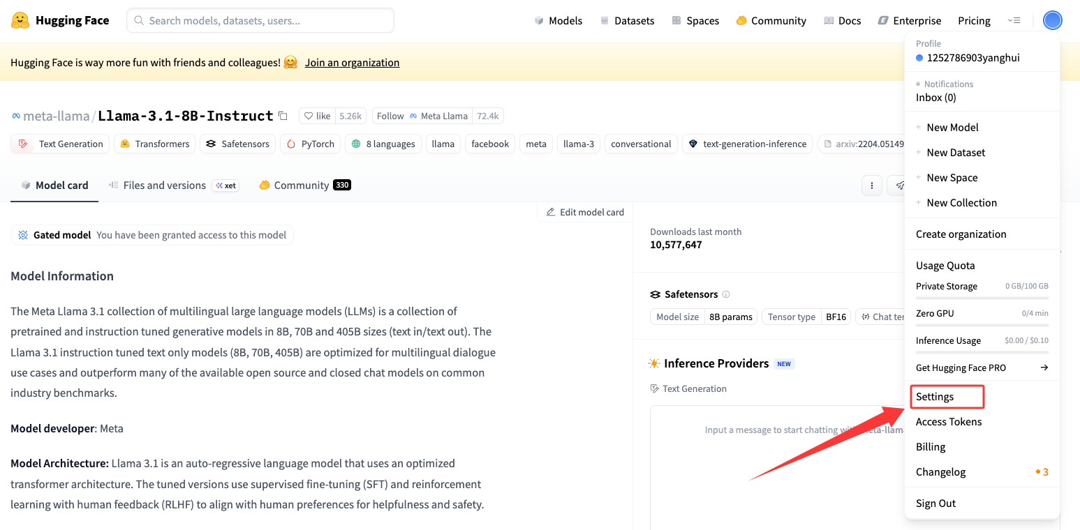LLM-申请 Hugging Face 访问令牌(以Meta-Llama-3.1-8B-Instruct为例)