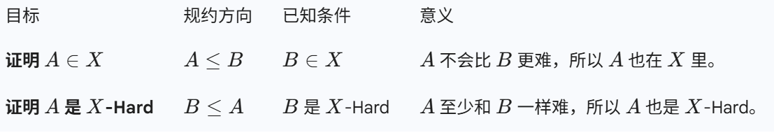 ✅要证明属于X,可以用A规约到已知是X的B的方法