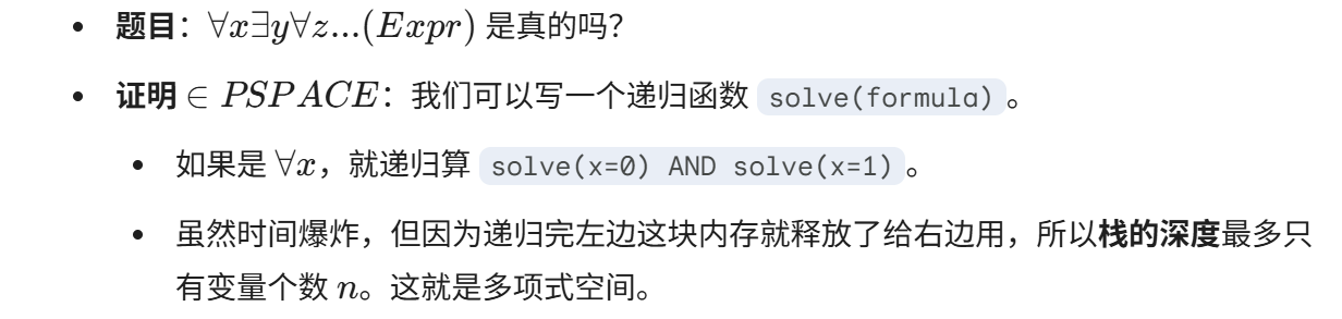 怎么做 :证明你可以写出一个算法 ,虽然它可能跑得慢(指数时间),但它占用的内存深度必须只有多项式级别。
