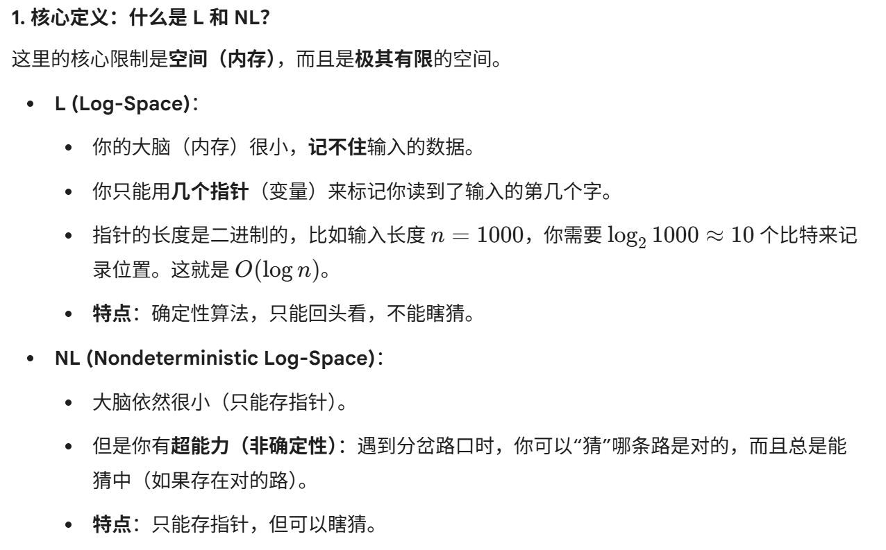 L 和 NL 都是很"弱"的类(它们包含于 P)