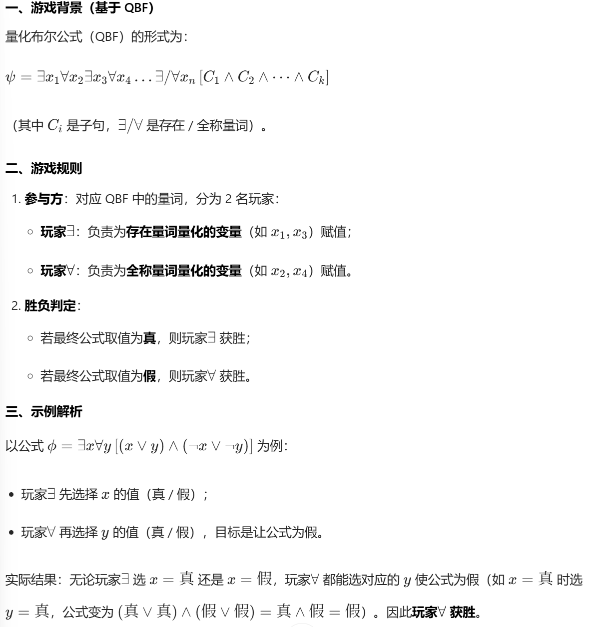 怎么做:PSPACE-complete 问题通常都带有"博弈"或"全称量词"性质。