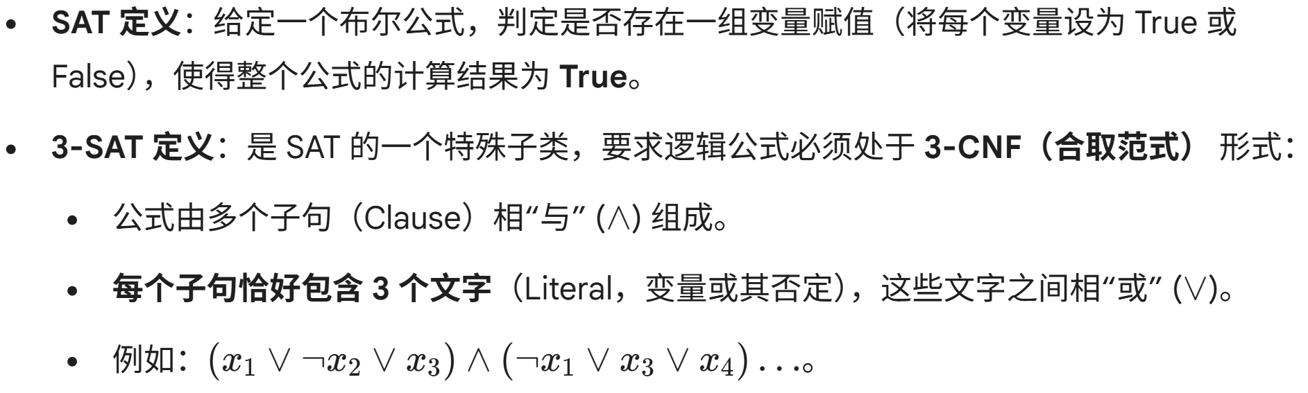核心思路 :从 3-SAT (万物起源)或 Clique 等已知 NPC 问题出发。