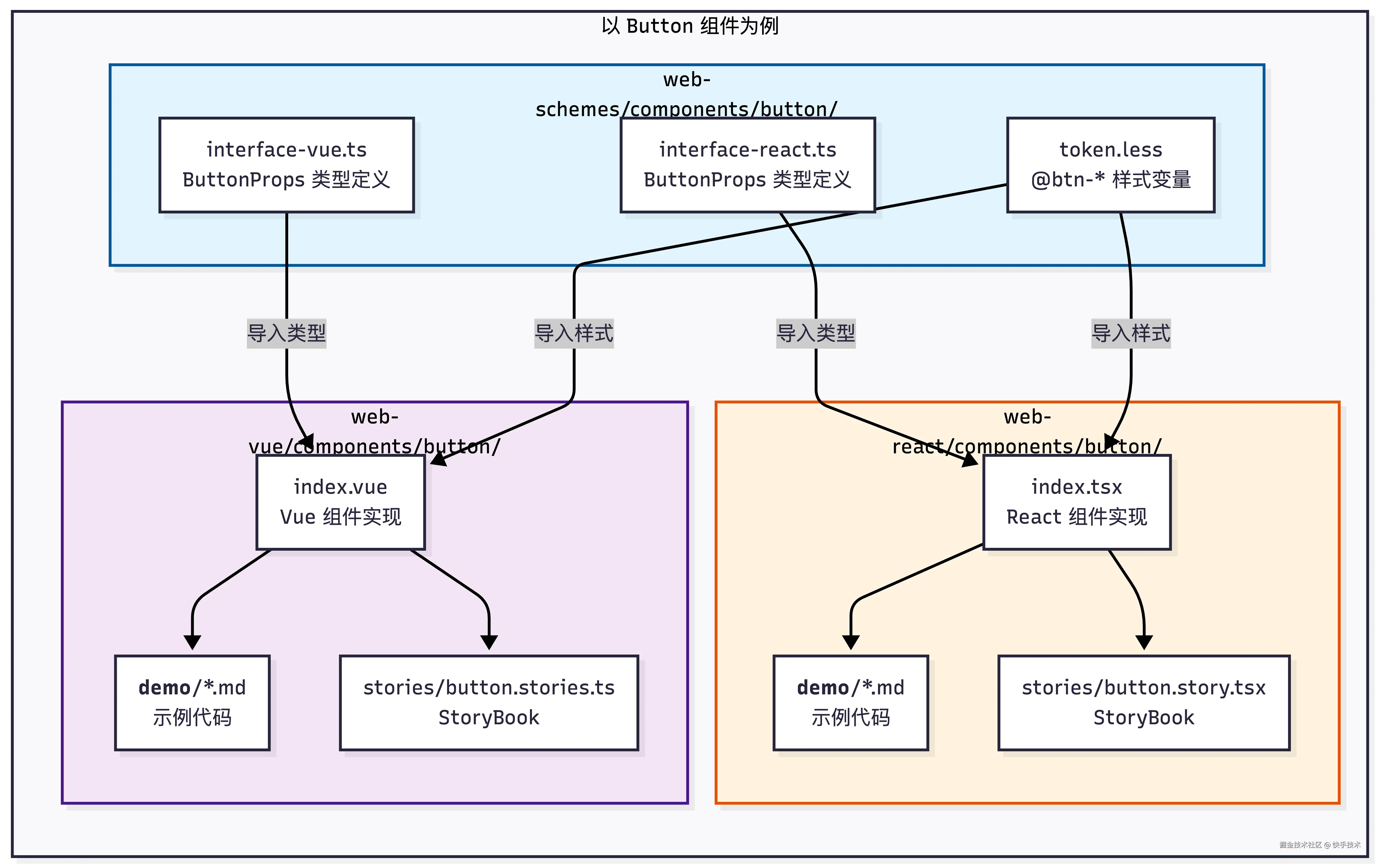 单组件双技术栈栈 Token、Props 对齐约束示范