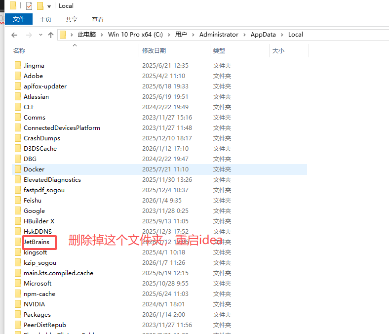 2. 找到 idea的安装位置,清除idea在磁盘中的缓存文件