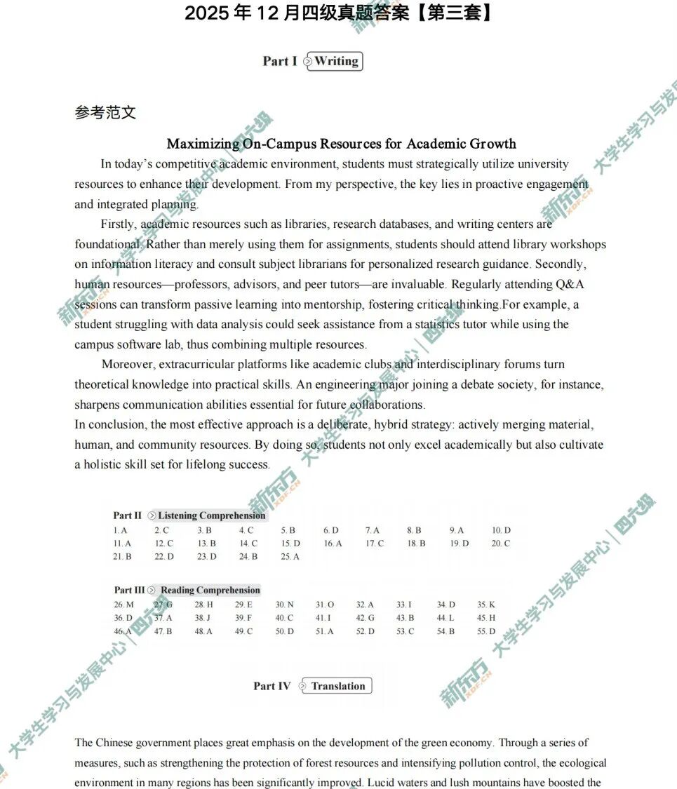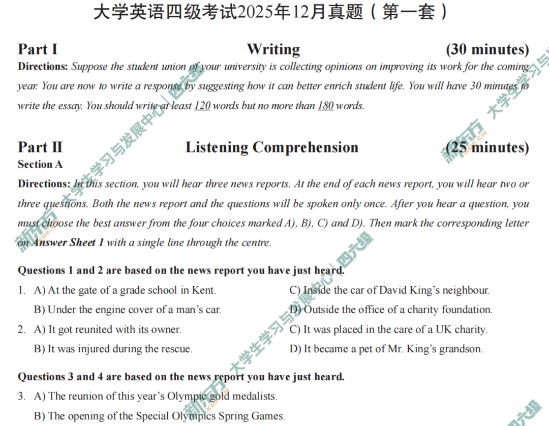 | 2025年12月英语四级考试真题及答案解析(第三套) ||