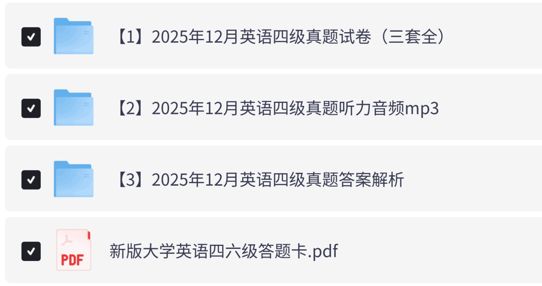 **2025年12月 的英语四级CET4考试**真题试卷、答案解析及听力音频mp3,PDF电子版!