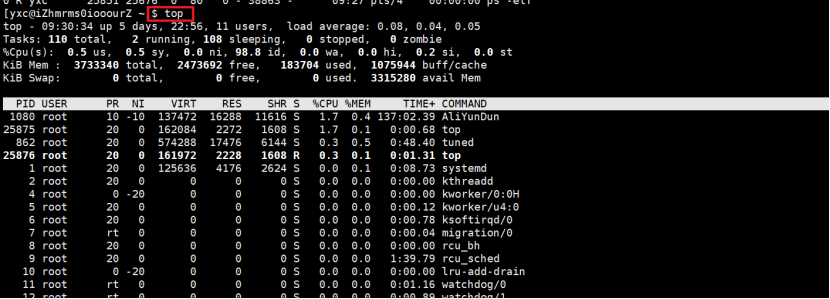 (3)top:查看进程,动态检测,实时更新