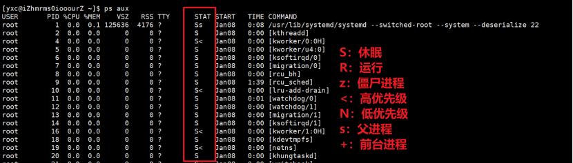 - a:显示档期终端下所有进程信息,包括其他用户的进程