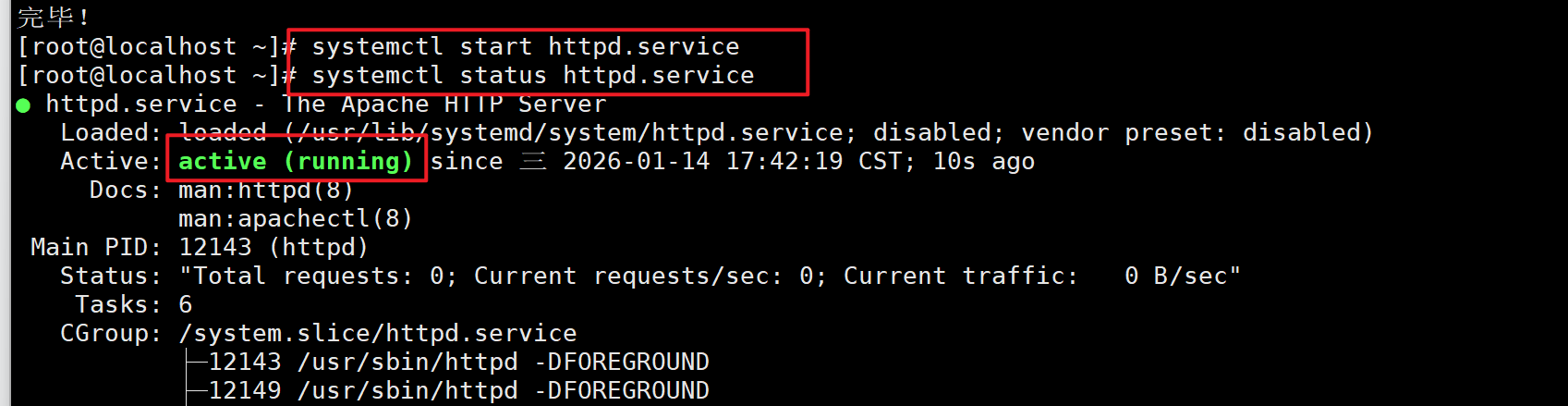 systemctl status httpd.service 查看状态