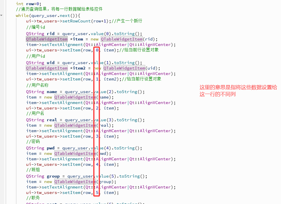 ui->tw_users->setItem(row, 0, item);//给当前行设置对象