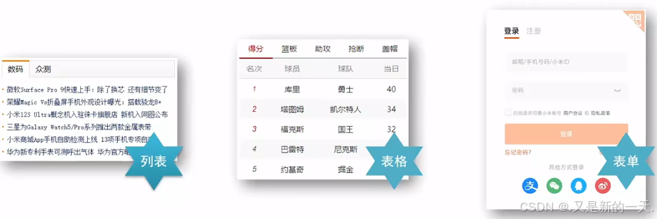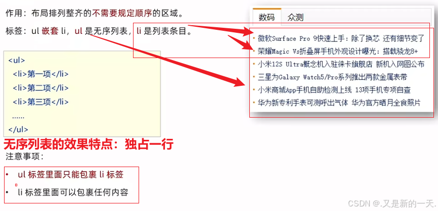 - 列表的作用:布局内容排列整齐的区域