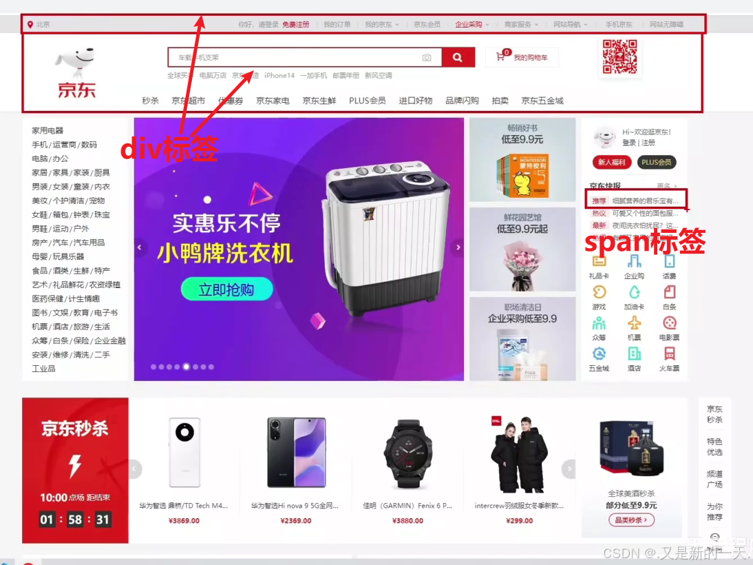 - 实际生活场景:div标签和span标签