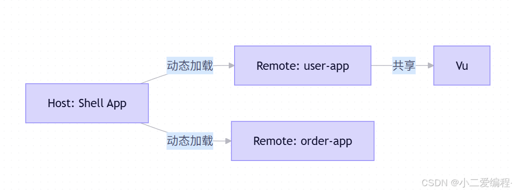 user-app) - Shared Dependencies:共享公共库(如 Vue、Pinia),避免重复加载