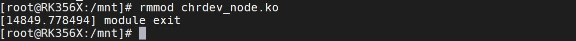 使用 rmmodchrdevnode.ko 命令可以卸载驱动,卸载完成如下图 所示: