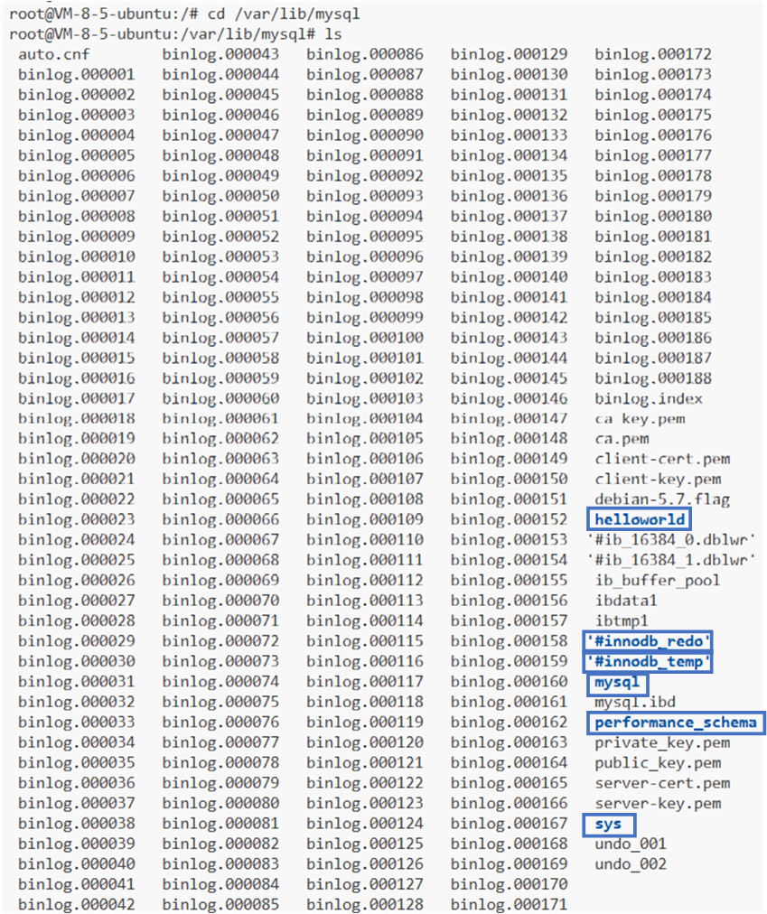 如上图该文件夹中,所有目录(蓝色名字)就是数据库。