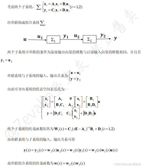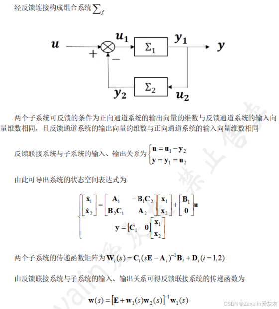 ③根据各子系统与组合系统的输入输出关系,导出组合系统的状态空间表达式与传递函数矩阵。