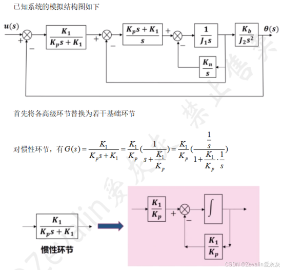 ①对复杂的系统方框图进行变换,将包含高级环节的系统方框图变换为只包含比例、积分和加法环节的方框图。