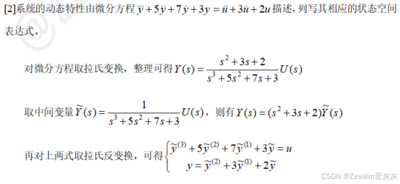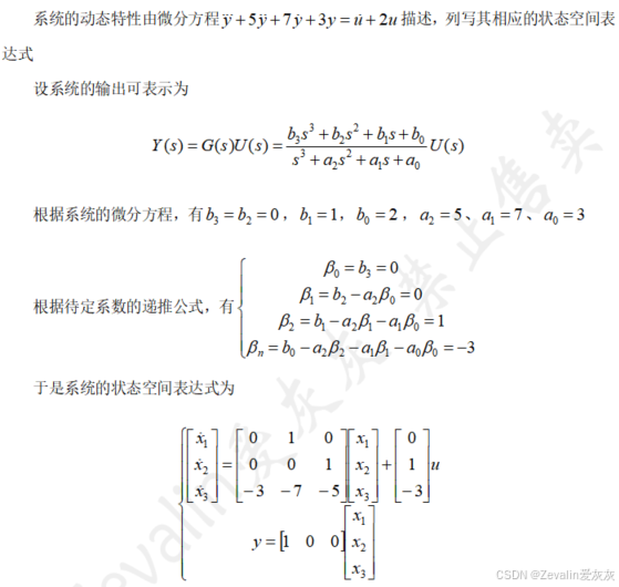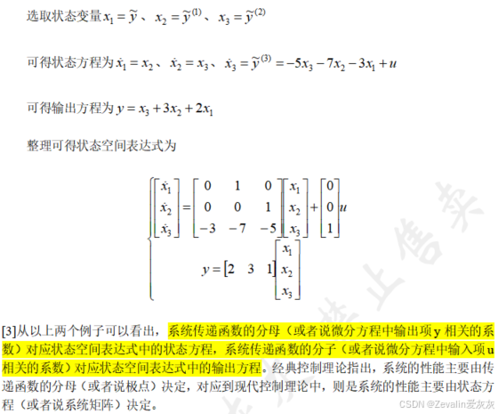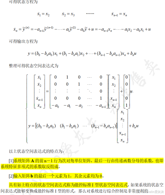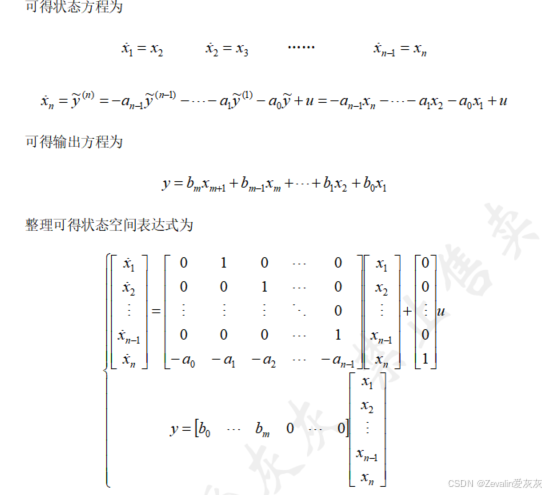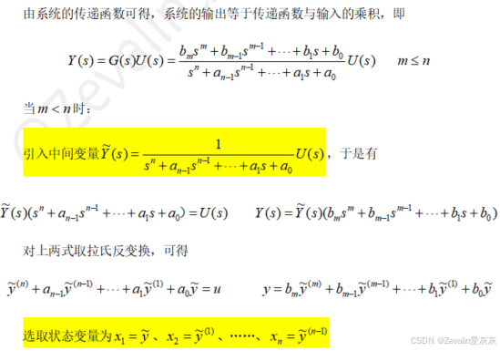 3、根据传递函数或高阶微分方程得到状态空间表达式