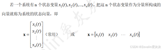 ①状态变量是足以完全表征系统运动状态的最小个数的一组变量。