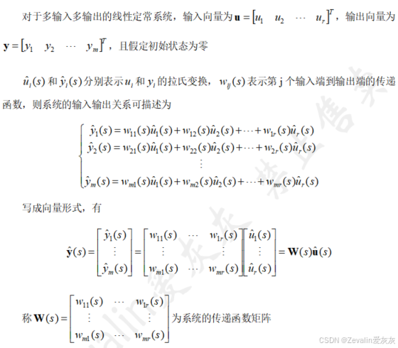 (1)传递函数矩阵的定义:
