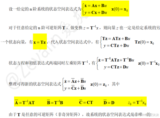 1、状态空间表达式的非唯一性