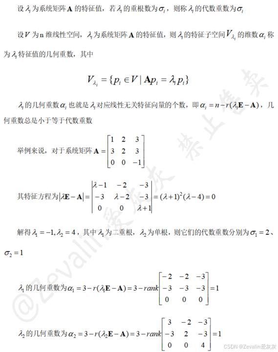 (1)特征根的代数重数和几何重数概念: