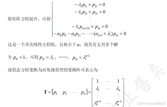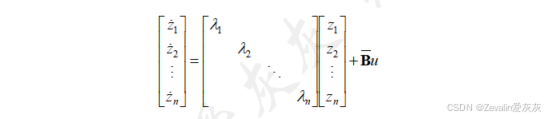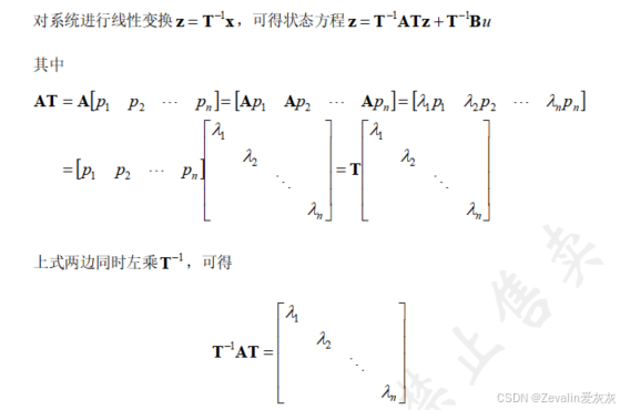 (3)在对角规范型下,各状态变量间实现了完全解耦,可表示为几个独立的状态变量方程。