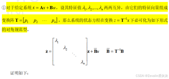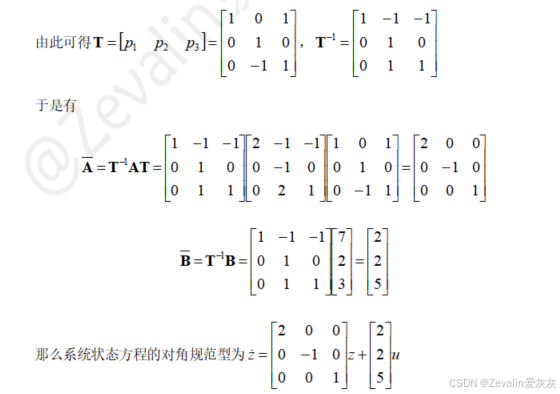 (2)对角规范型状态方程: