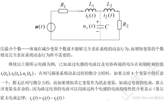 ②对于一个实际的物理系统,状态变量的个数应大于等于系统中独立储能元件的个数,在实际分析中,需考虑对实际物理系统描述的精细程度要求。