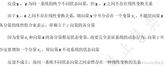 ①状态变量是相互独立的,从数学的层面看是线性无关的,也即其中任何一个变量都不能用其它变量的线性组合来表示。