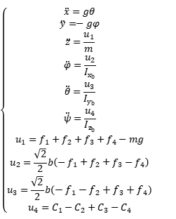 得到线性化的模型后,我们将该模型看成6个子系统,有3个关于位置的子系统,有3个关于姿态的子系统,由于在我们的产品中没有水平位置的传感器信息,因此这里只考虑高度子系统和3个关于姿态的子系统。则有以下4个状态空间表达式: