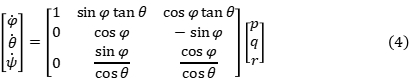 又因为欧拉角角速度与刚体坐标系下的角速度有如下的关系: