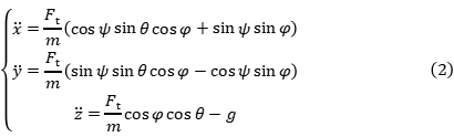 电机1、3增速(减速)且2、4减速(增速),由于转矩差的作用,无人机可实现偏航运动;