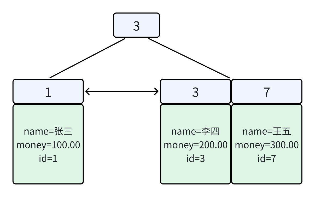 非聚簇索引的叶子节点中:不存整行数据,只存「索引列值 + 主键值」