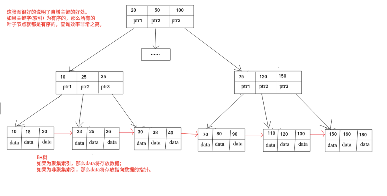 聚簇索引:在 InnoDB 存储引擎中,聚簇索引通常就是主键索引 。聚簇索引的特点是数据与索引一体化存储,即**数据行(整行,不是指针)**直接存储在索引的叶子节点中,并且数据按照主键的顺序进行物理存储 。这使得聚簇索引在查询时具有极高的效率,尤其是对于主键查询和范围查询。因为数据是按照主键顺序存储的,所以在进行范围查询(如查询 ID 在某个范围内的用户)时,可以利用索引的有序性,快速定位到满足条件的数据。此外,聚簇索引还能利用顺序检测预取机制,提高数据读取的效率。例如,在一个用户表中,以用户 ID 为主键创建聚簇索引,当查询用户 ID 为 100 的用户信息时,数据库可以直接通过聚簇索引找到对应的叶子节点,获取用户信息,无需进行额外的查找操作。需要注意的是,一张表只能有一个聚簇索引,因为数据的物理存储顺序只能有一种。